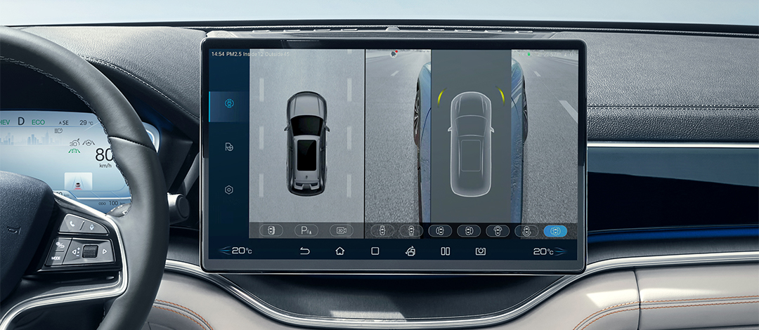A vista panorâmica de 360° elimina os pontos cegos, permitindo que você veja claramente o entorno do carro com um simples olhar.