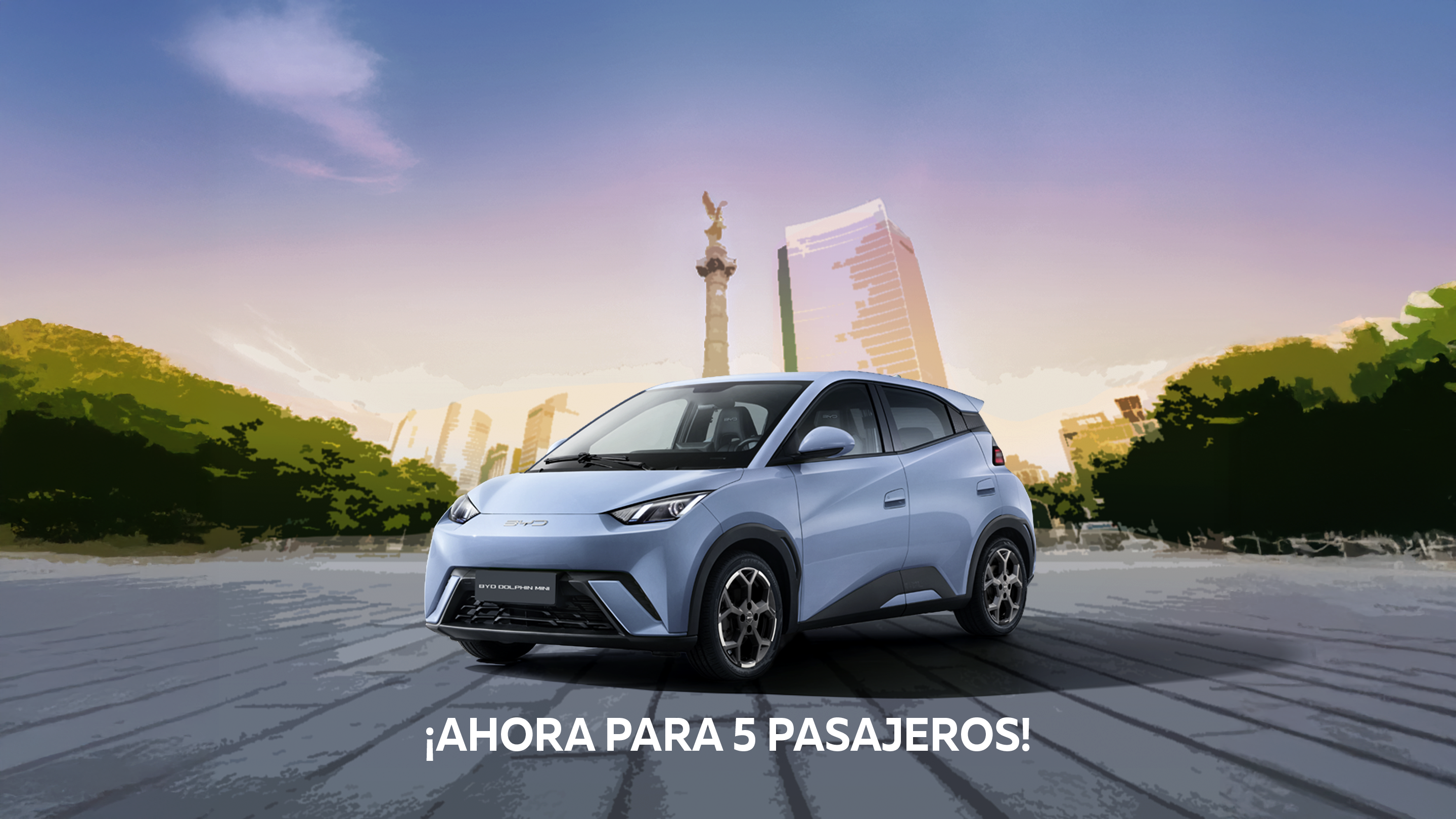 Este vehículo contiene los dispositivos de seguridad obligatorios de conformidad con la NOM-194-SE-2021. La autonomía (distancia que puede recorrer un vehículo eléctrico sin parar para recargar) en la ficha técnica, depende de diferentes factores incluyendo, de manera enunciativa y no limitativa, capacidad de su batería, uso que se haga del motor, características del vehículo, estilo de conducción, condiciones de manejo, hábitos de manejo del usuario, condiciones climáticas y del camino, así como peso, tamaño y especificaciones técnicas del vehículo, entre otros. Hasta 8 años o 200,000 kms. (lo que ocurra primero) en batería. Hasta 6 años o 150,000 kms. (lo que ocurra primero) en el vehículo de “defensa a defensa”. Hasta 8 años o 150,000 kms. (lo que ocurra primero) en sistema de alto voltaje y motor eléctrico. Tiempo contado a partir de la primera venta a cliente por parte del Distribuidor Autorizado BYD, kilometraje según odómetro del vehículo. Garantías sujetas a la correcta realización de servicios de mantenimiento de acuerdo al manual de usuario del vehículo. Válido únicamente para la República Mexicana. Aplican restricciones. Precio de venta sugerido por el fabricante (MSRP Manufacturer´s Suggested Retail Price) para BYD Dolphin Mini modelo 2025, incluye IVA, el monto es expresado en pesos mexicanos. Precios sujetos a cambios sin previo aviso. Imágenes son de carácter meramente ilustrativo. Para mayor información sobre los vehículo, nivel de equipamiento y disponibilidad por versión consulta con tu Distribuidor Autorizado BYD o en https://www.byd.com/mx