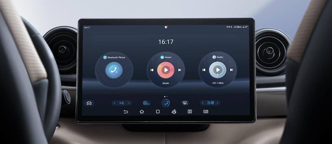 The dominant display screen serves as the centre of a connected universe, integrating intelligent voice and connected car functions to allow the user to drive without distraction while also adding intelligent entertainment to the experience