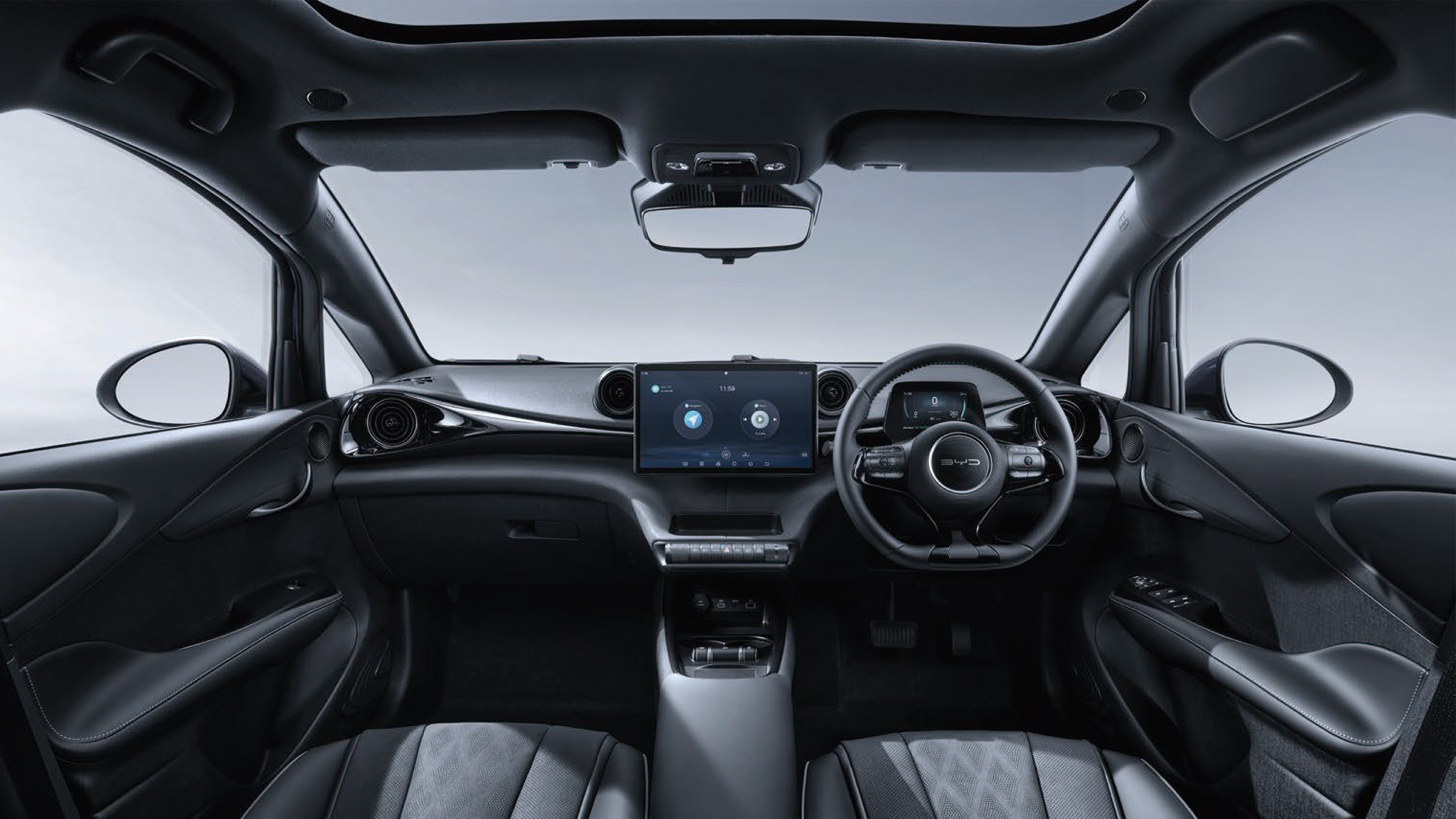 The futuristic suspended centre console design creates a modern, dynamic driving environment with its metal trim detail that runs across the entire dashboard, forming a beautiful, minimalist curved surface.